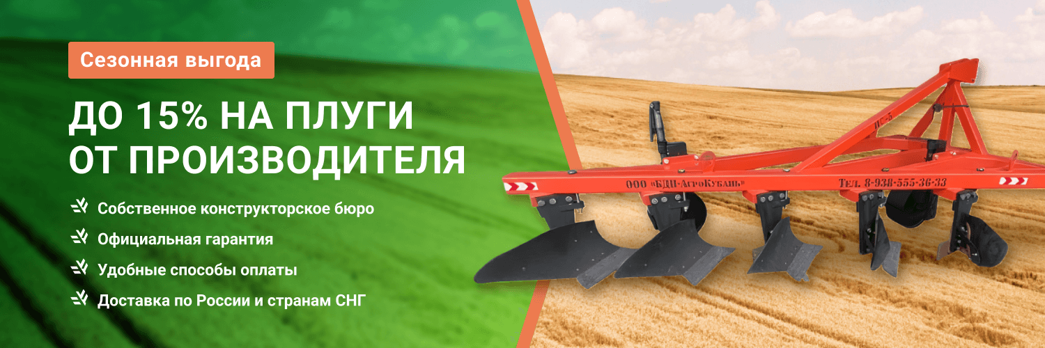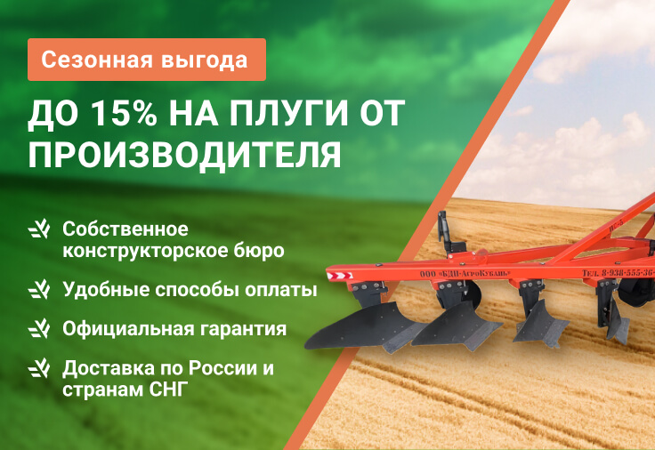 Для заказа сельскохозяйственного оборудования добавьте подходящий агрегат в корзину и оформите заказ! Доставка отвального плуга осуществляется в сжатые сроки. Если у вас остались вопросы, позвоните по номеру +7 (861) 298-41-05. Профильный специалист ответит на все вопросы и подберет оптимальную модель.
